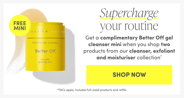 Get a free Better Off Cleanser mini when you shop two products from our cleanser, exfoliant and moisturiser collection*